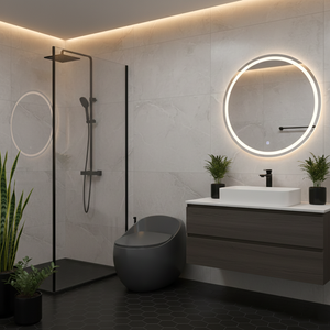 GLOSSY GREY WITH UF SEAT COVER FLUSHING : WASH DOWN