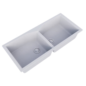 Quartz kitchen sinks are made from a mix of Natural quartz crystals and resins, creating a strong, non-porous surface that resists scratches , stains, and heat.