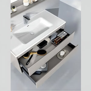 A vanity unit is a Bathroom cabinet with a washbasin and storage space. It's a piece of furniture that can include a mirror, counter, and drawer